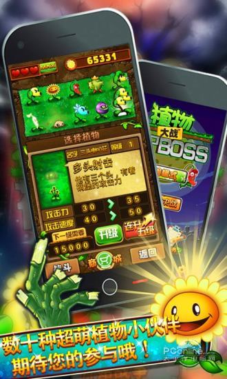 一旦上手,绝对过瘾!10余种超萌植物,20种搞怪僵尸,多种僵尸BOSS?更有新加入的小伙伴组团系统,让你组成史上最强的超萌植物战队,与僵尸BOSS来一场酣畅淋漓的超决战!每天更有“壕”礼相送哦!