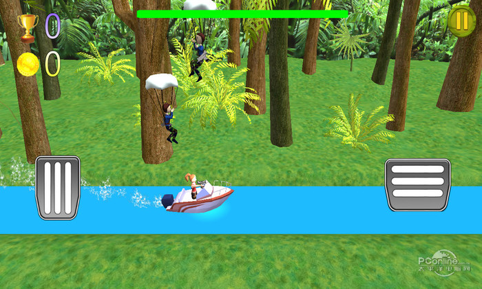 所有兴奋的射击游戏和惊人的丛林历险记的粉丝,欢迎来到新的比赛水中格斗3D!可爱的女孩妮基喜爱在丛林中划船并且杀死罪犯。现在她有一个使命,从讨厌的恐怖分子那里解放丛林!妮基帮助阻止恐怖分子入侵和尽可能多的收集硬币,你可以!测试和提高你的瞄准射击能力!