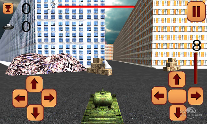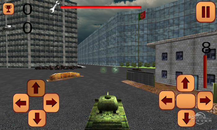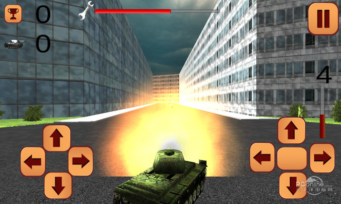 使用箭头控制坦克的动作。想射击,就点击屏幕。用扳手能修复你的坦克。收集弹药盒,然后能点击你的敌人。