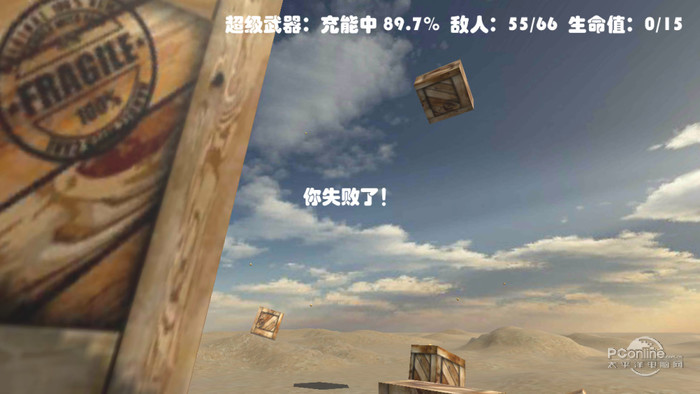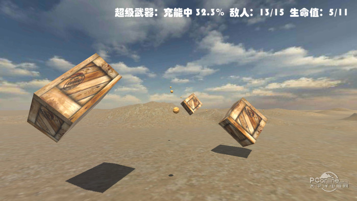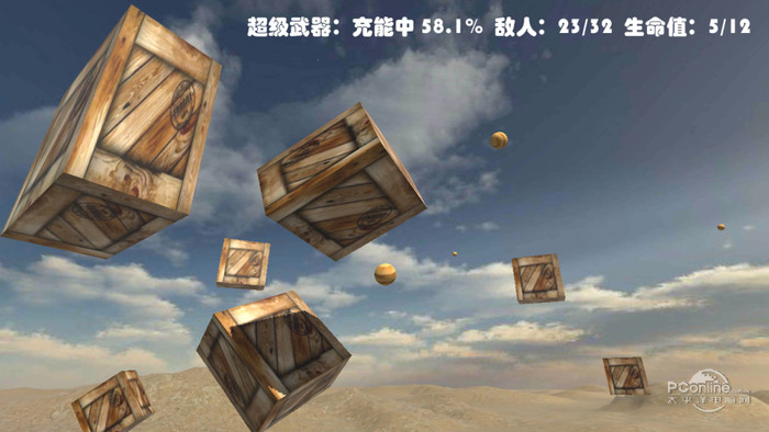 简单的射击游戏,拖动屏幕瞄准,把砸向你的箱子击落!随着游戏的进行,箱子的数量会越来越多。击落一定数量的箱子之后,你也会获得生命值奖励。当生命值降至0,游戏结束。射击的同时,可以给武器进行充能。当充能完毕时,会开启超级武器,无论是火力还是威力都会大大提升。