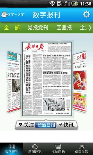 i长治APP客户端(译为“爱长治”),是长治日报社精心打造的长治首款集本地新闻发布和生活消费服务为一体的智能手机应用,设置有【数字报刊】、【新闻速览】、【本地团购】、【便民服务】四个栏目,通过i长治客户端,您可以随时随地获取长治最有价值的身边新闻,阅读最新鲜的报刊杂志,享受最实惠的本地团购,体验最便捷的便民服务,是您真正的掌中助手、贴心朋友。