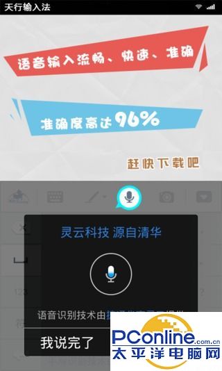 天行输入法应用捷通华声“灵云”平台手写识别,语音识别,光学字符识别(OCR)技术能力,支持竖屏叠写,横屏连写,语音输入,图片上的文字识别输入和键盘输入,让您轻松享受手写输入的舒适,语音输入的便捷及文字识别输入的畅快.