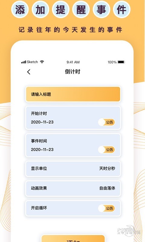 通过标准倒数日,你可以方便的创建纪念日、倒数日、dao计时、日程提醒、备忘清单、便签以及各种重要的事项,保证多端协作而不必担心保存的数据丢失,是您管理时间、纪念日、生日、倒数日、dao计时以及做规划计划的好帮手.