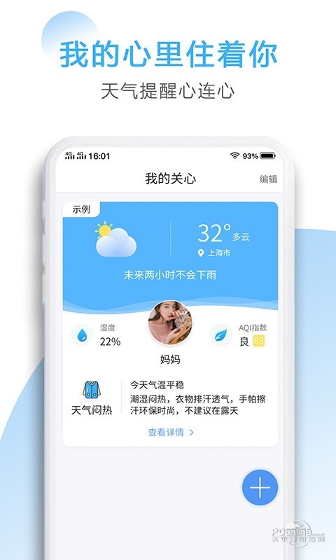 异地天气收藏关注:支持收藏多个街道的地址,关心你关心的人.