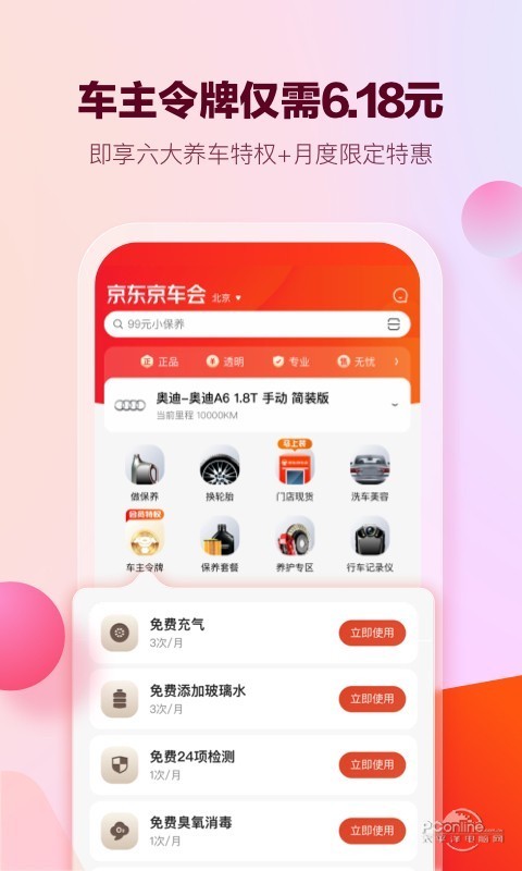 京东京车会APP不定时上线优惠养车活动,同享京东大促力度,新人超值礼包可叠加各种优惠组合,更有线上线下多重福利补贴.