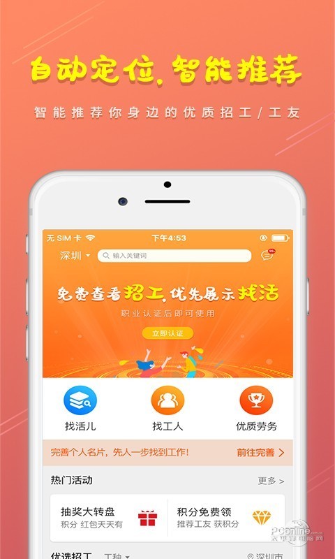 -根据招工方、求职者自动定位,智能推荐身边的优质招工信息