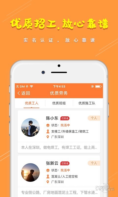 -招工方、求职者实名认证,招工、求职、找工作更加安全靠谱