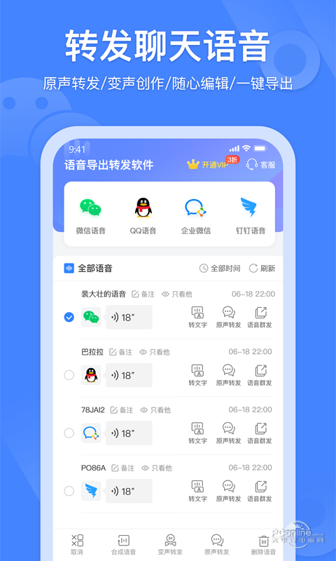 语音转发是一款专业高效的微信语音转发软件,具有原声转发,变声转发,分享mp3,语音合并等功能,是一款非常实用的软件.