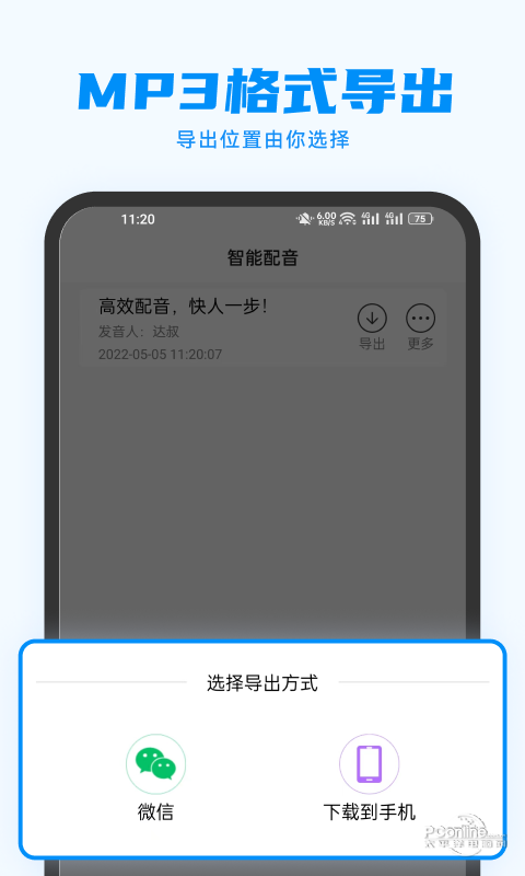 3、一键导出:一键导出到微信、本地、复制下载地址
