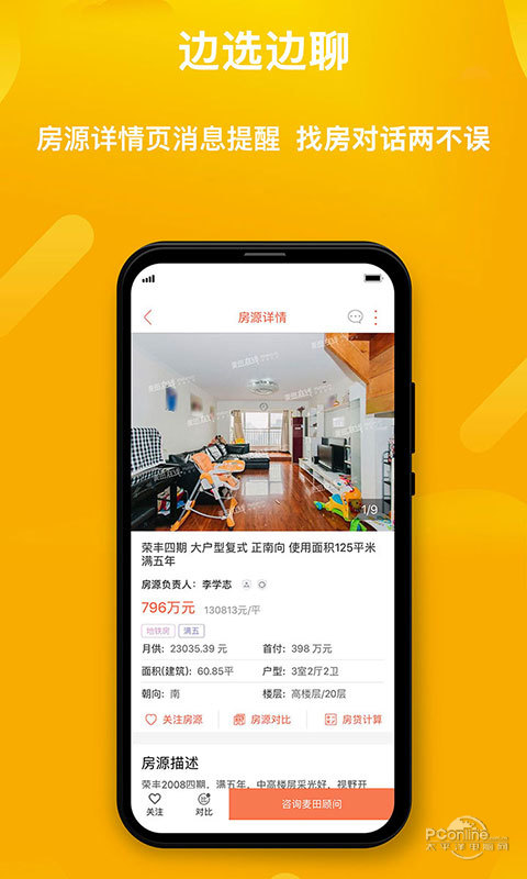 2.一键咨询:只需一键即可与麦田房产顾问沟通,不需要输入联系方式等信息,保护用户隐私.