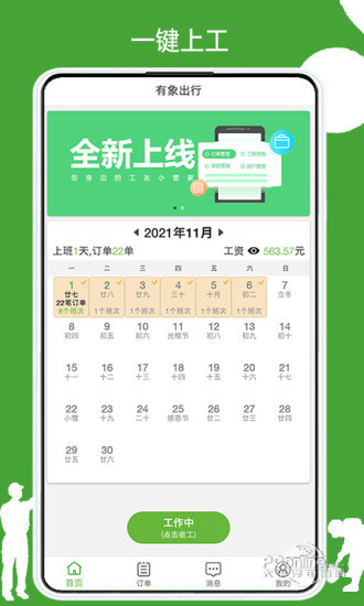 有象工友是河南金途科技集团股份有限公司旗下一款基于互联网+工友的移动互联网产品,致力于为交通行业(网约车驾驶员、建筑工友)提供高效、便捷服务。有象工友为网约车驾驶员提供在线接单、订单费用结算等网约车服务;为建筑工友、班组长提供记工、记账、考勤打卡、拍照打卡服务,为项目部、班组长管理提供数据支撑。