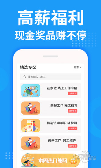 掌上兼客,一款专为年轻人打造的兼职平台,真实可靠的兼职,让你前程无忧!临时工、实习、赚钱、在家兼职,网上兼职、手机兼职找工作这里应有尽有!是一款能够让你轻松兼职、赚钱的网络兼职手机应用。优选名企兼职,严格的审核机制,虚假企业零容忍,招聘岗位企业直签,安全有保障!不管你是大学生、全职宝妈、蓝领,只要想挣钱找副业,那就快快加入我们吧,一起来创造一个“斜杠青年”的时代吧! 【企业分类】不同凡响的工作,开创不同凡响的未来热门招聘企业涉及餐饮、超市、家政、保洁、美容、美发、美甲、酒店、旅游、酒吧、KTV、婚纱、摄影、保健等数十个行业。 【热招岗位】-在这里,各个领域的人才都能大有所为热招的岗位有:客服、销售、在线客服、服务员、快递员、兼职、美容师、店员、导购员、美容、汽车销售、护士、搬运工、学徒、洗车工、礼仪、钟点工、发型师、水电工、保姆、收银、健身教练、司机等。 【合作企业】加入一家敢于大胆假设,勇于认真求索的公司麦当劳、肯德基、泰康人寿、汉堡王、美团外卖、真功夫、中通、平安普惠、必胜客、电信、华莱士、顺丰、淘宝、朴朴、永辉、盒马! 做兼职,当然上掌上兼客,职位多,赚钱快!