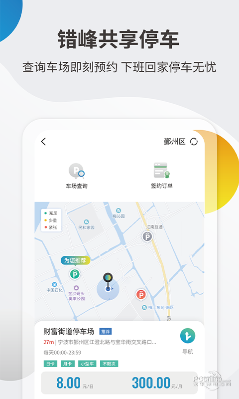 宁波车主必备的停车APP“甬城泊车”,由宁波市政公用投资有限公司运营,本着“车主舒心、管理省心、监管放心”的原则,为您提供宁波市区内便捷的泊位诱导、停车查询、快捷支付等一系列服务,致力于实现全市范围的通停通付,进一步解决城市静态交通难题.同时围绕服务车主、提升车主使用体验,将陆续推出洗车维修、保险、代驾、充电等增值服务.