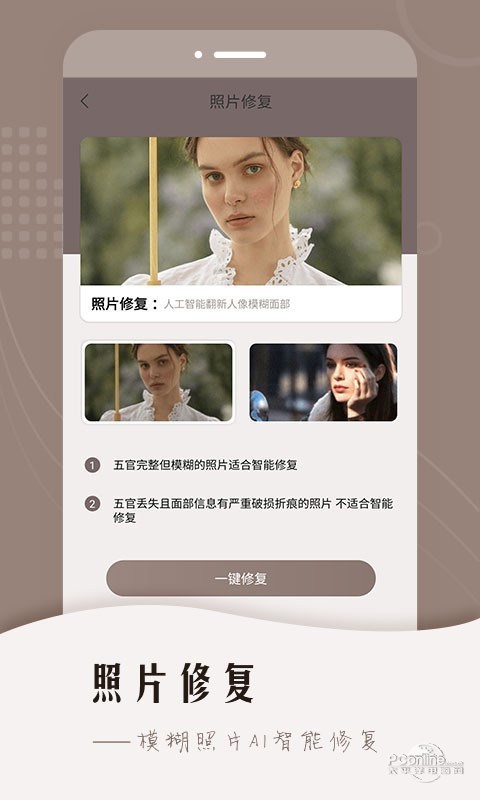 -使用人工智能技术,可以将模糊照片、低清照片、斑驳痕迹修复,并针对面部进行了高清还原修复.