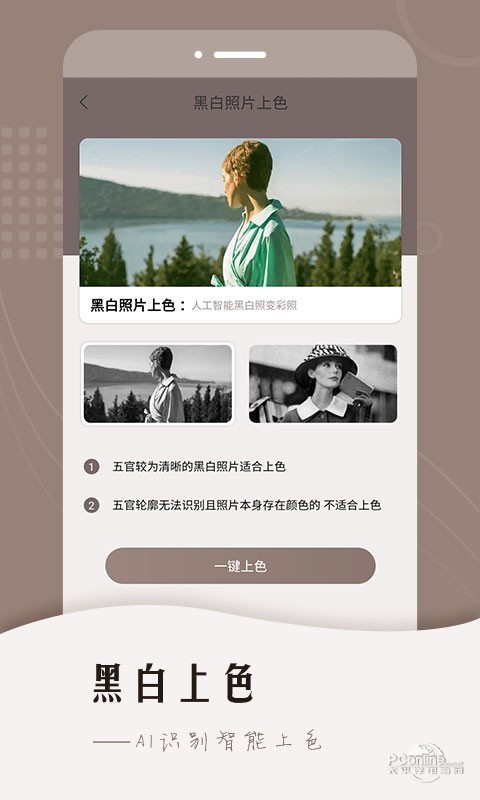-通过Ai对黑白老照片一键上色,还原符合场景的色彩,帮您把那些珍贵值得怀念的黑白照片重换光彩,让那一张张装满回忆与美好的黑白照片变得鲜活,使其重新焕发活力.