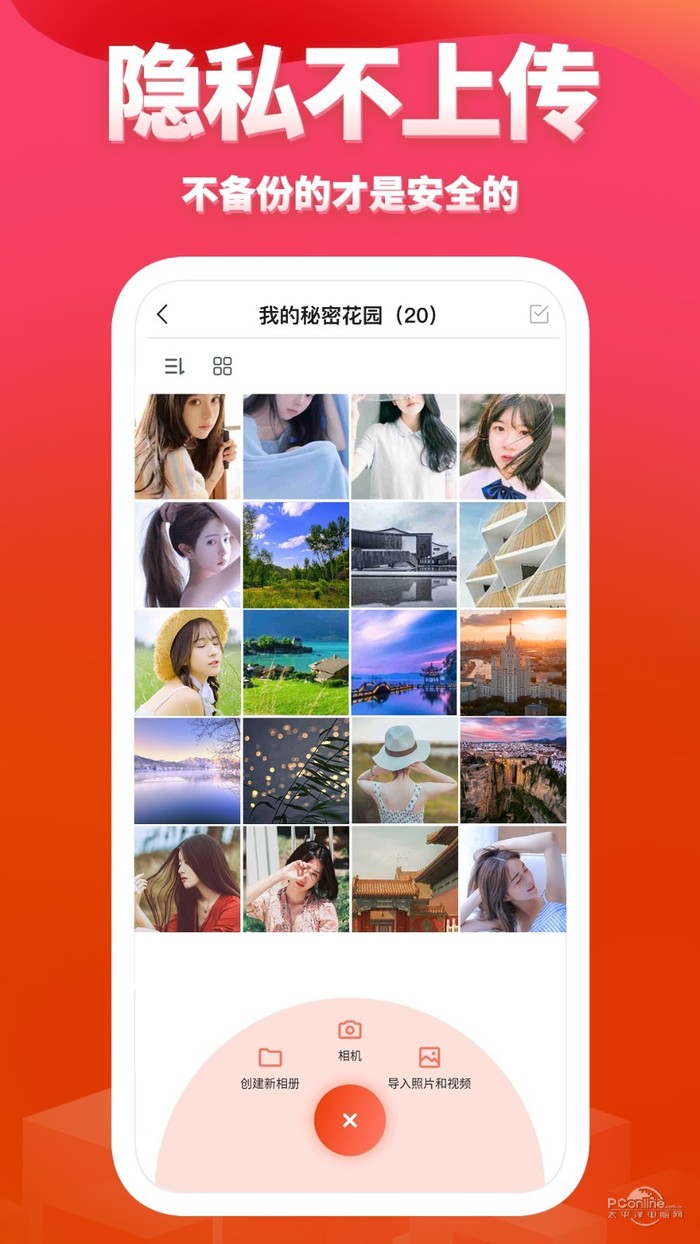 无云盘不上传---您的隐私照片或视频只保存在您的手机本地,不上传服务器,绝无泄露可能
