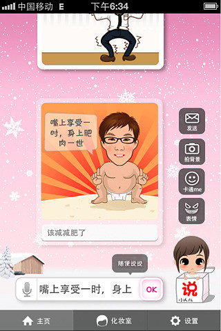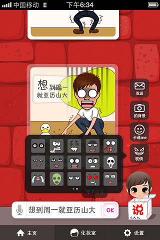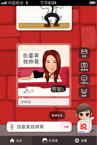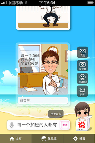 小人儿说是全球第一款改变人类交流方式的图像交流工具.只需输入文字,通过语义识别瞬间生成应景漫画,真正做到用漫画表达思想,描述生活.系统有百万素材,千万组合,承载你任何表达.你更可化身漫画主角,拍下照片,小人儿说瞬间把你卡通掉!搞笑强人,形象百变随你搭配.表情动作与语义同步,随改随变,让你的漫画创意无限.一键分享到微信,微博,彩信及你的朋友圈.独创最新,最酷的个性表情,引领新潮交流方式.2013.1.5更新1 优化程序2 修改BUG