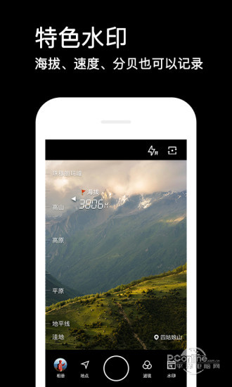 3.智能的水印模版:地点、时间、分贝、海拔、,智能水印自动添加到照片上