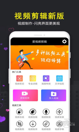 爱剪辑是一款用于安卓手机的视频剪辑编辑软件!应用操作简单,可以轻松剪辑制作视频,支持海量影像效果的自由搭配,丰富的文字编辑方式,让你随时随地制作视频,并同时分享到各大社交网站和自己的微信朋友 圈,制作视频就是这么简单、快乐、随意。爱剪辑的主要特点: 1. 多种视频裁剪屏幕比例选择。 2. 添加原创背景音乐。 3. 实时拍照、摄像、录音。 4. 制作多种炫酷转场效果。 5. 自带时尚MV滤镜效果、FX、动画效果等,各种效果可重叠使用。 6. 多种文字编辑模式,多种文字进出场效果可选。 7. 专业视频去水印功能 8. 视频编辑过程中,随时进行预览播放及调整效果 9. 视频及音乐随意剪切