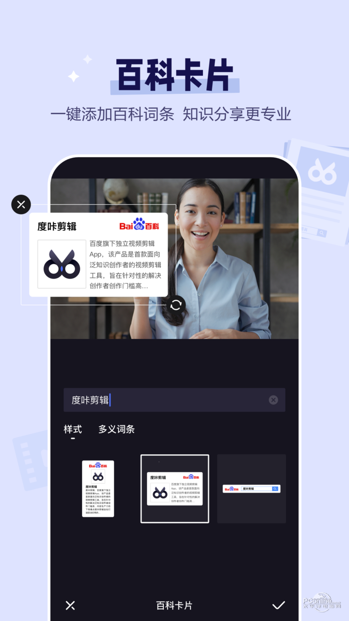 百度专为口播自媒体研发的剪辑App. 「快速剪辑」出片咔咔快.「一键包装」贴纸花字全搞定~「视频进度条」标注内容重点,完播率up.up.「提词器」口播脚本一遍过,轻松录制不卡壳~ 还有原创精美贴纸、正版音乐随心用.