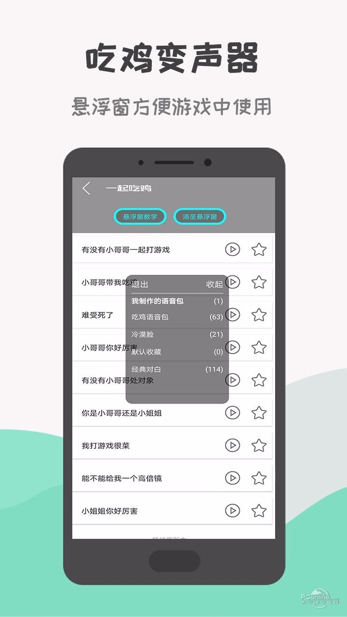 #吃鸡变声器,你可以录制吃鸡变声、女孩变声、刺激变声、吃鸡语音包、跳伞语音包等等