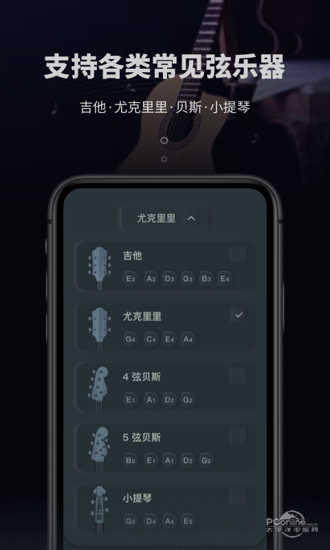 —支持各类常见弦乐器,吉他、尤克里里、4弦和5弦贝斯、小提琴......