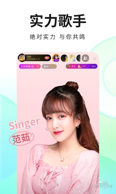 用音乐展示自己,用歌声与观众互动.这里是唱歌好听的直播平台,汇集各类型歌手,拥有海量原版伴奏,还有演唱会、录音棚、KTV等不同音效,秒开的视频直播体验,带给观众全新的音乐互动盛宴.