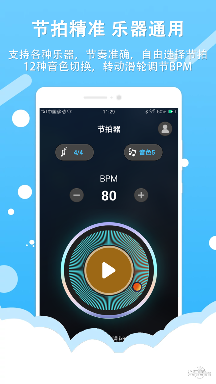 适配各种乐器,学习钢琴、吉他、尤克里里、古筝、小提琴、二胡、笛子、架子鼓等乐器的必备打拍子练习软件.适合音乐老师教学、音乐培训、歌手、唱歌练习、乐器练习、音乐专业学习等.