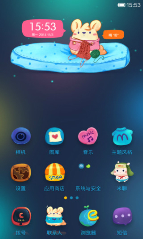1、界面简洁精致,小米桌面采用平铺是桌面设计,整体界面符合极简审美,交互设计可爱生动,点亮桌面整个手机界面仿佛会呼吸;
