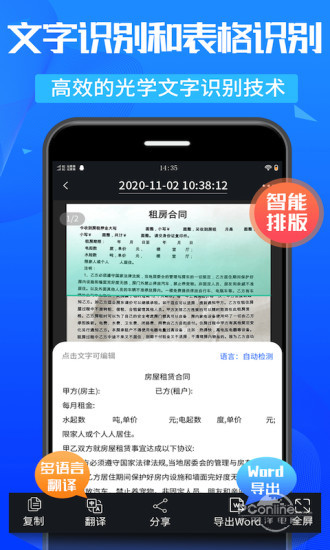 通过OCR文字识别技术自动识别、提取图片文字 ,解析信息;万能扫描王免费下载能够读取相机或者图库中的图片,智能裁剪图片,快速进行文字提取,然后自动图片转文字,支持word和txt文档导出分享.