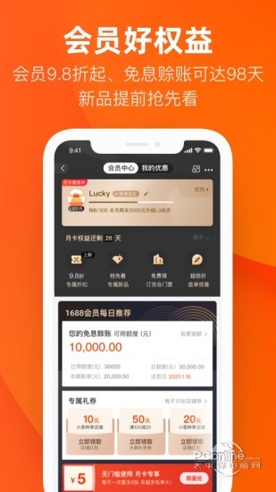 4)进货专属服务,个人卡券包,1688阿里巴巴批发网app下载包揽优惠券、线上线下店铺会员卡,记录你的足迹,记录我的偏好,快速找货补货。
