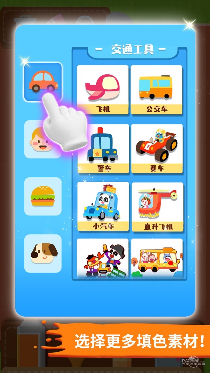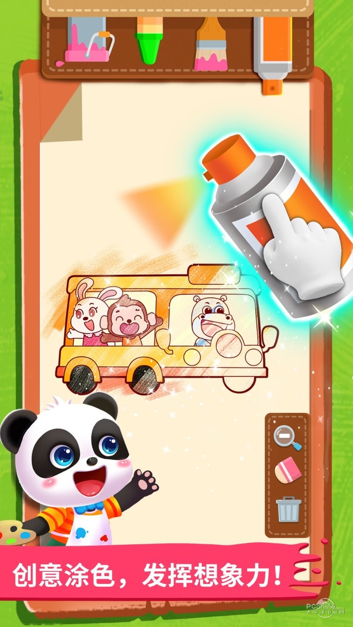 1.随心涂鸦和创意填色两种选择,宝宝自由创作;