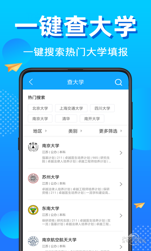 覆盖全国各大高校,985/211/双yiliu高校一网打尽,查分数、查专业、查院校一站式服务,院校介绍、招生简章.