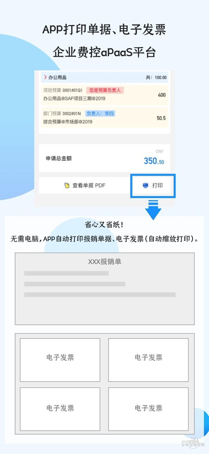 4、自动:多系统自动化集成,OCR识别发票、智能打印,记账、付款自动完成;