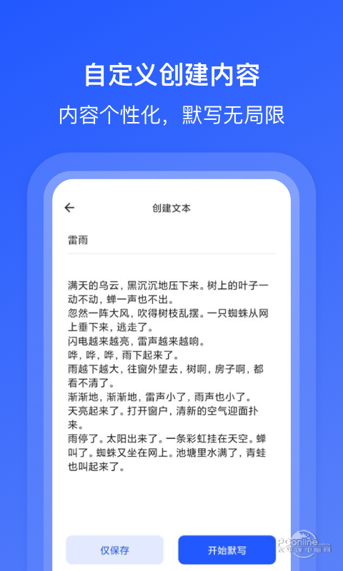 可自定义上传个性内容,创建的文本可直接被生成系统音频而支持聆听与默写,让默写无局限.