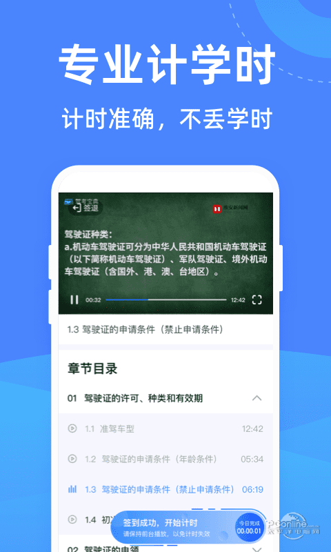 1.实时查询:专业的驾考网络教育学习平台,计时准确,实时可查;