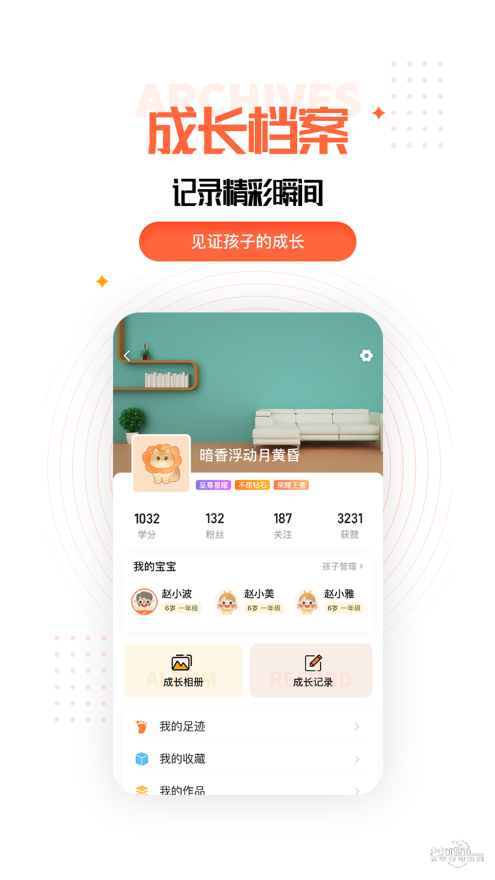 为家庭提供服务以家长、教育行业专家为主要用户群体,通过共育理论知识、学习应用服务、综合服务体系等组成的 0—18 岁孩子成长提供系统解决方案.关注于每一个孩子的个体发展,尊重每一个孩子发展的适宜性为目的,尤其关注他们的心智,性格的完善和培养,在孩子成长的过程中遇到的顾虑,烦恼,为广大家长提供一个指导性的意见和建议,保证孩子的身心健康.
