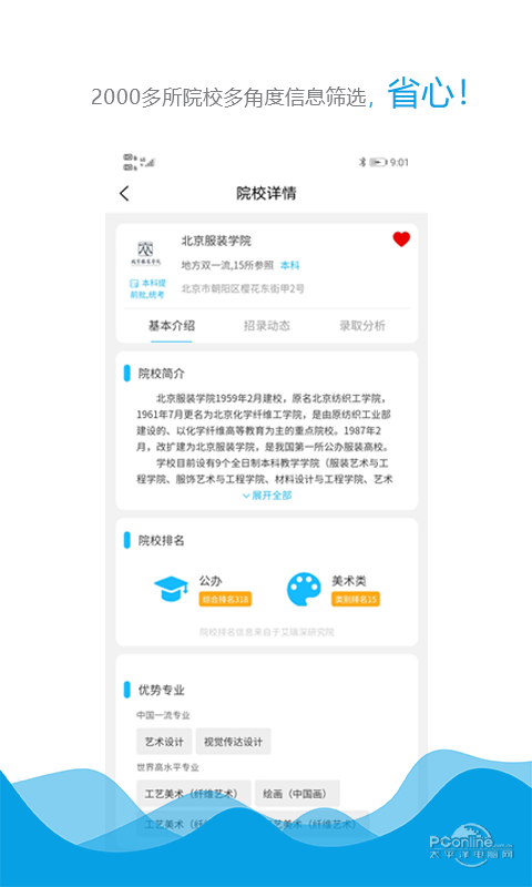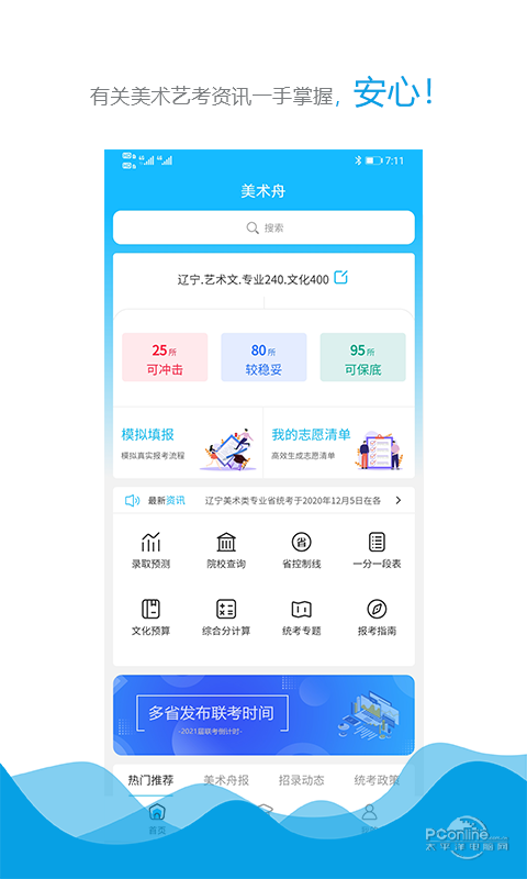美术舟系杭州九舟教育科技有限公司研发的一款服务于美术生高考志愿填报的工具类软件,为美术生提供高考志愿填报预测的升学规划服务.经过多年研究和积累,美术舟已覆盖18个省市,与数十个省份机构达成战略合作.