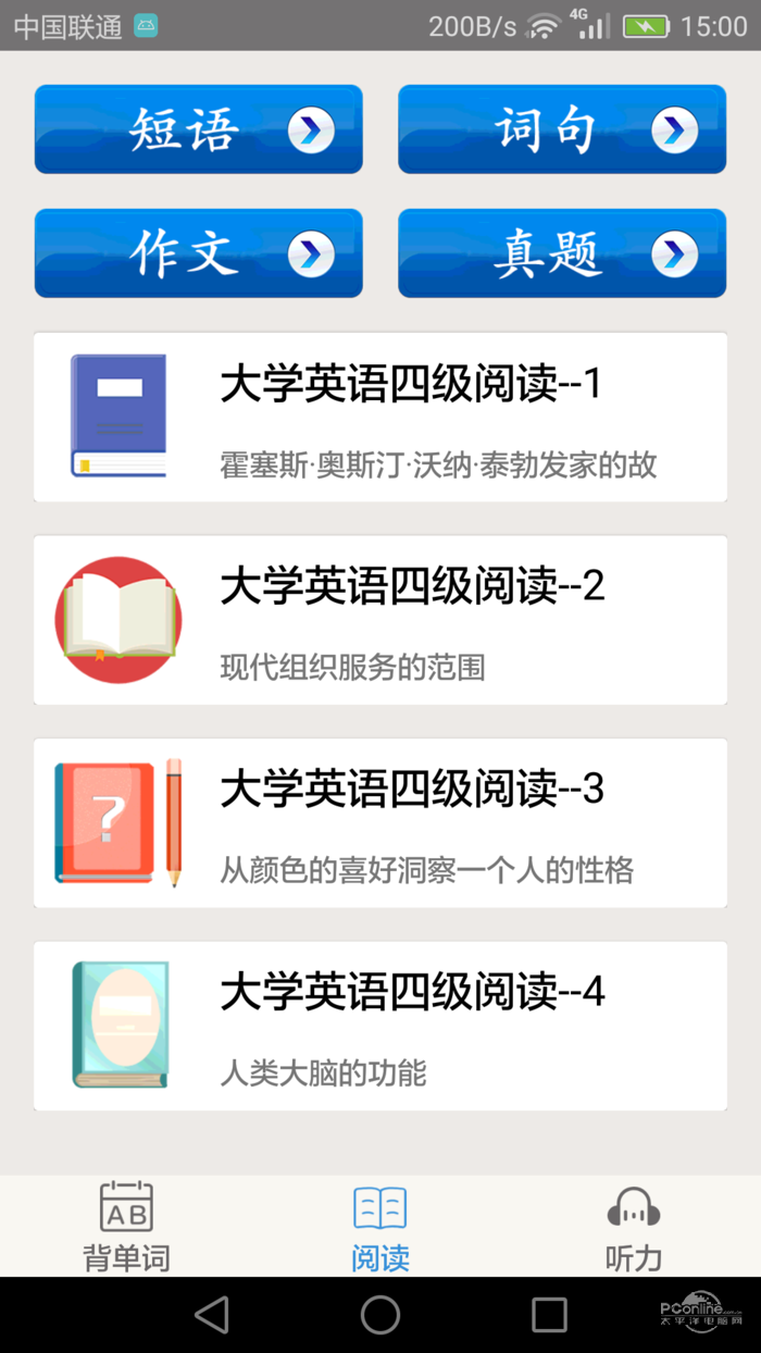 三、英语听力,四级考试的第一大题即为英语听力,历年英语四级考试真题听力,多听多练;