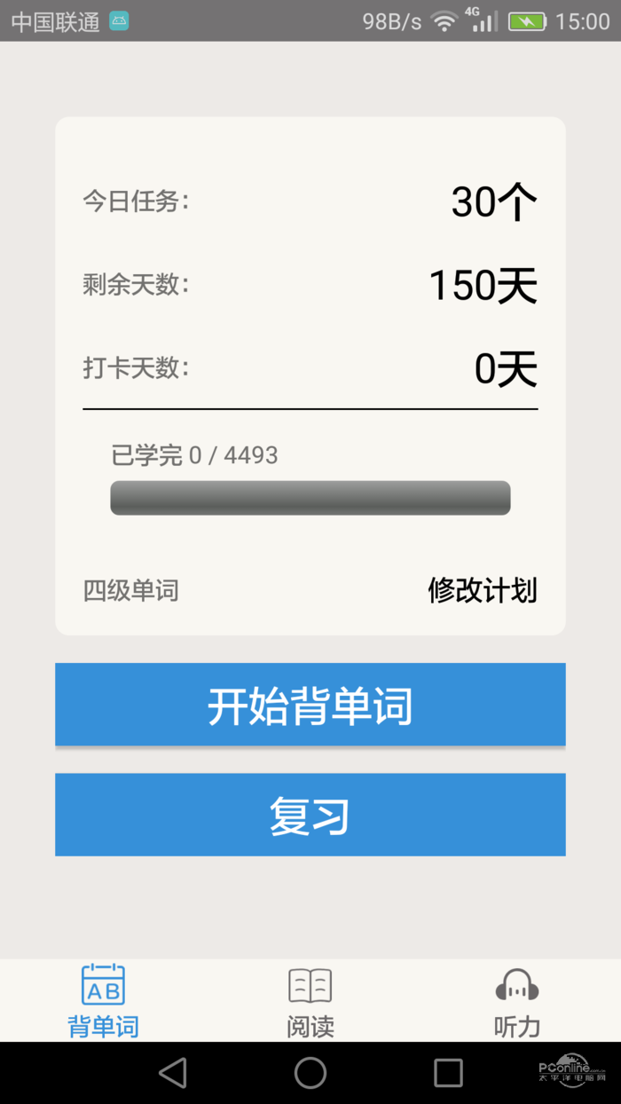 一、背单词,背诵四千多个英语四级高频单词,设定每天背诵单词的任务,背完打卡;