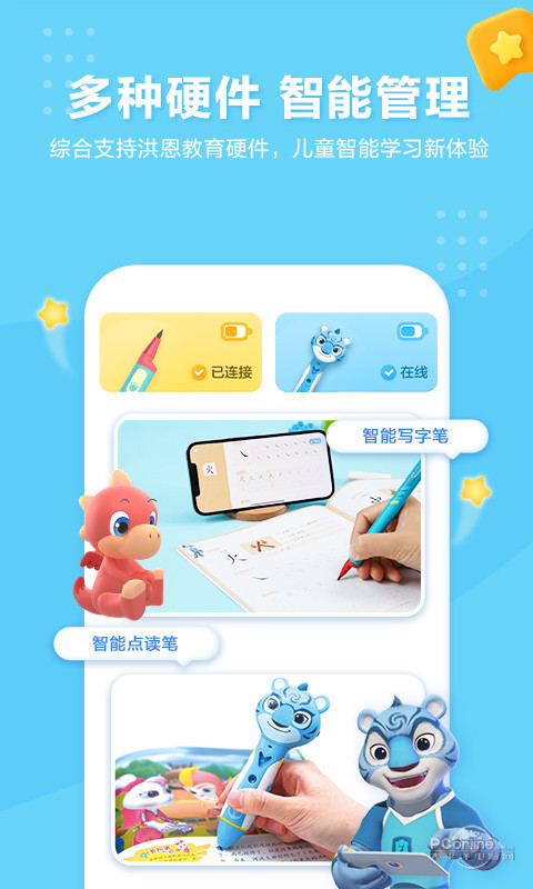 多种硬件 智能管理:综合支持洪恩教育出品的点读笔、写字笔等系列硬件产品的管理与应用,给孩子们带来更好的智能学习体验
