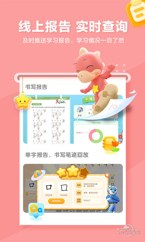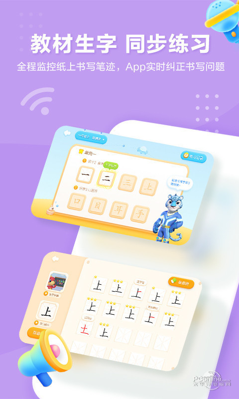 教材生字 同步练习:同步部编版小学语文教材,智能写字笔全程监控纸上书写笔迹,App内实时反馈书写问题,还能对比书写回放和正确写法,帮助孩子纠正错别字、笔顺笔画及间架结构等常见问题