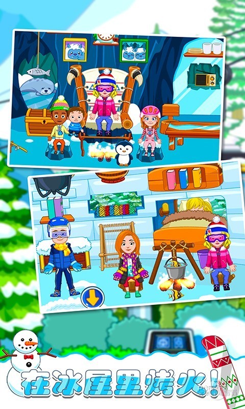 首先,你可以和你的小伙伴去超市购物,挑选几套你喜欢衣服、帽子、雪地靴.你还可以去雪地堆雪人,和小伙伴们来一场打雪仗比赛,真是有趣极了,玩累了,记得坐下来休息一下,别感冒了哦.这时候来杯热饮是好的选择.当愉快的一天结束时,你甚至可以体验一下在冰屋里睡觉.更多好玩的场景,更多自定义玩法,你还在等什么,赶紧下载托卡迷你城市滑雪人吧.