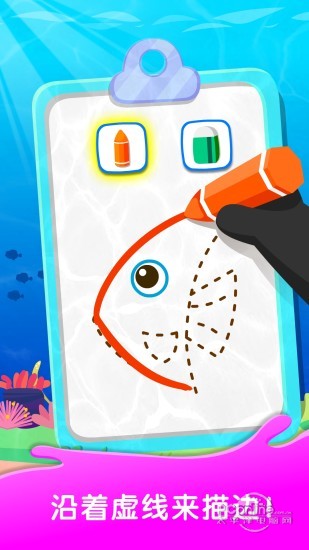 《奇妙简笔画》选用大海为背景,引导宝宝用简单的笔法勾画出大海中各类生物的形象,然后用动画活灵活现的演示出来,提高绘画技能,激发宝宝的创作热情和绘画兴趣。 还在烦恼宝宝对画画不感兴趣?快来【奇妙简笔画】吧!在神秘的海底世界里一边画画一边冒险,保证让宝宝爱上画画! 跟着提示描边线,画的形状更标准;魔法上色,让小动物动起来! 和乌龟捉迷藏、和鲨鱼抢皇冠……让宝宝在冒险中爱上简笔画! 真实丰富的海底世界·有趣易学的绘画冒险 【互动小剧情】珍珠住在贝壳里,墨鱼遇到危险会吐墨……跟着鱼群去冒险,处处都有新发现! 【魔法简笔画】将魔法注入画笔,画出螃蟹剪断缠脚的海藻,召唤海豚赶走凶凶的鲨鱼,用魔法简笔画化解危机! 【简单式引导】圆圈总是歪歪扭扭,直线也画不直?没关系,简单小提示一步一步教会你!呜哇,轻轻沿着虚线画一个椭圆、加几条曲线……乌龟先生就爬过来啦!