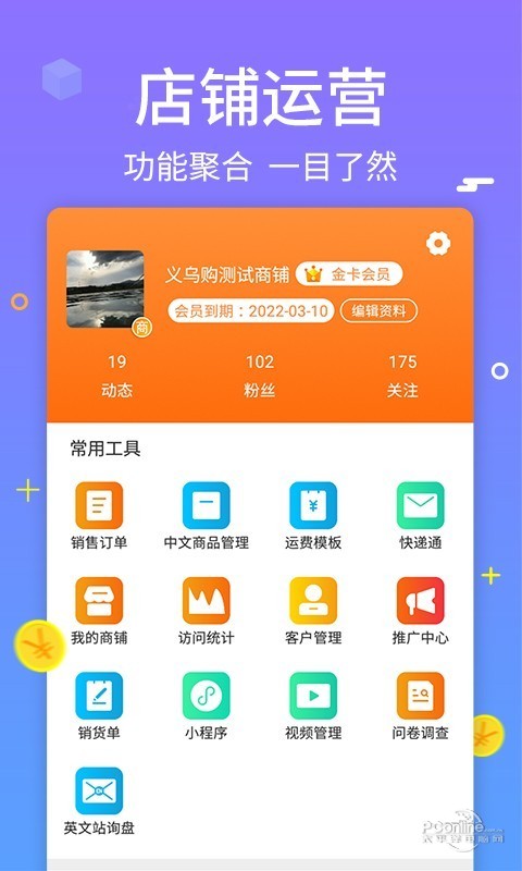 义乌购商户版是专门为义乌购商户打造的移动商铺管理工作台,主要用来解决商户的移动办公需求,具有订单管理、商品管理、实时消息回复、查看经营数据等功能.