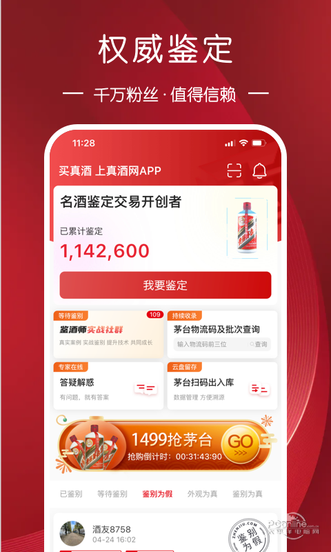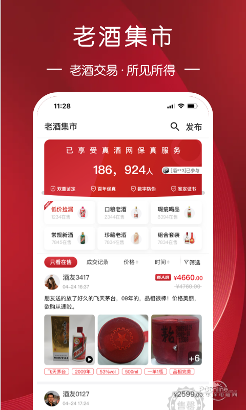 真酒网APP是由深圳真酒网电子商务有限公司孵化的【名酒鉴定交易】,主要为消费者提供名酒的鉴定、交易及担保服务,用专业鉴酒技术让你远离假酒.
