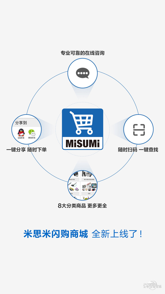 米思米 闪 购 商城,具有搜索/浏览、询价/订购、在线支付、订单查询、在线客服等功能的工业品移动购物软件.