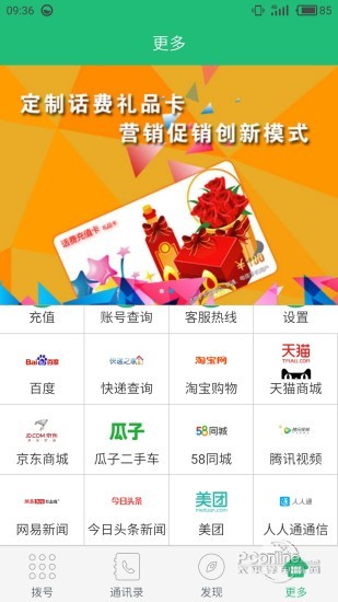 4.除了拨打电话,通讯录的常规功能,还集发现,分享,上网导航,商城等多种特色功能。