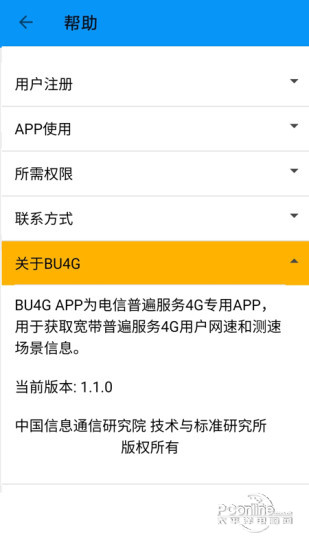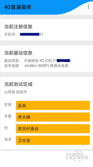 BU4G APP支持对普遍服务4G建设地区的网络开通、宽带速率等情况进行测试和数据采集,客观反映电信普遍服务4G网络建设状况,能够为有关部门开展电信普遍服务4G试点工程验收和工程质量管理,全面评估电信普遍服务实施效果提供重要依据。