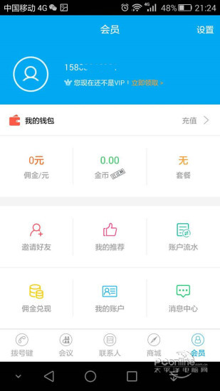 一款网络电话APP,可以嵌入商家广告,有商城入口,抽奖拿金币,最清晰的网络电话应用,是通过互联网直接拨打对方的固定电话和手机,国内市话长途全部可以,而且资费是传统电话费用的10%到20%,注册就送话费。